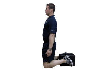 From kneeling position, assume neutral spine. Place pillow between feet and ankles. Squeeze pillow while